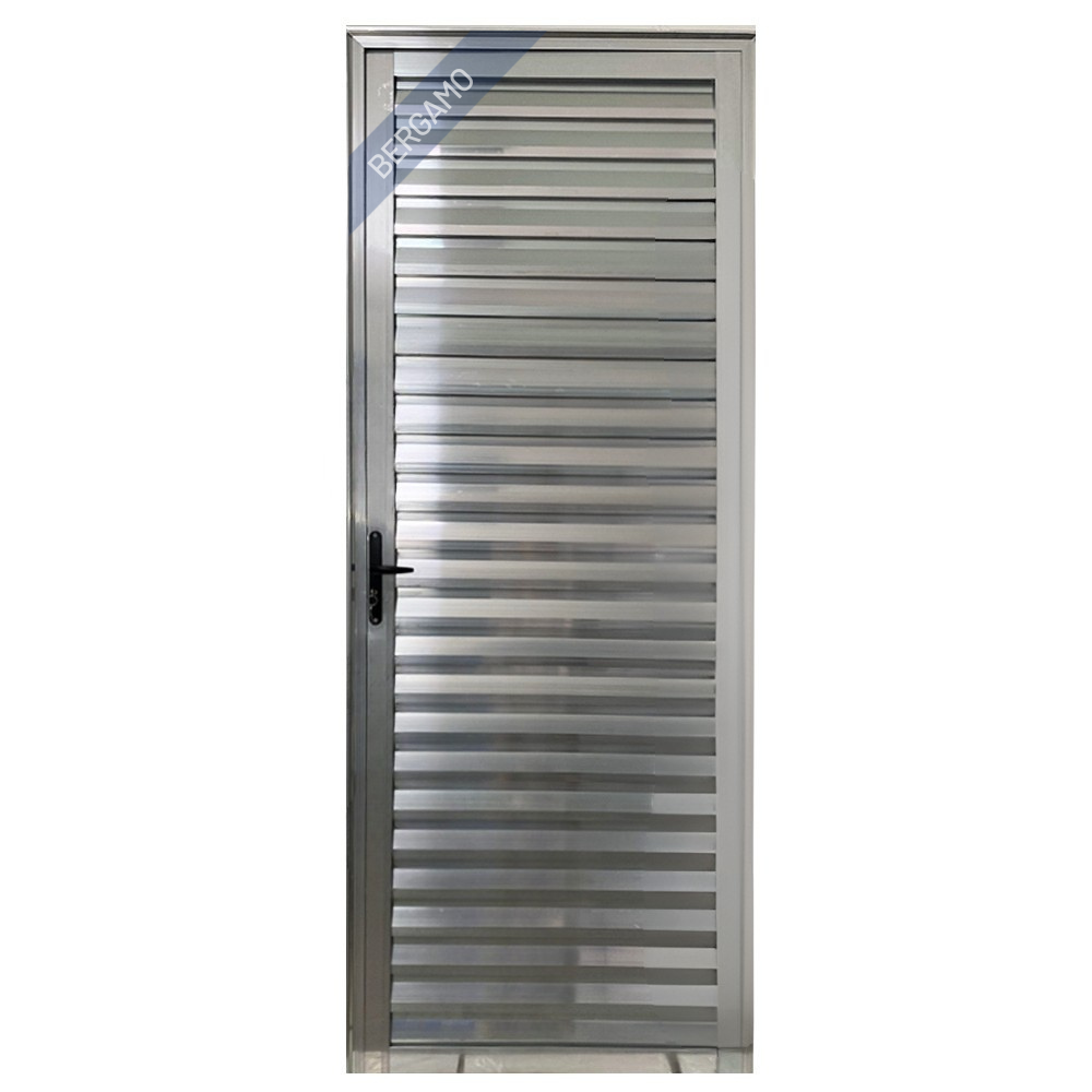 A porta social de alumínio é inteira constituída por palhetas, muito utilizada em cozinhas, lavanderias, corredores entre outros ambientes do imóvel.