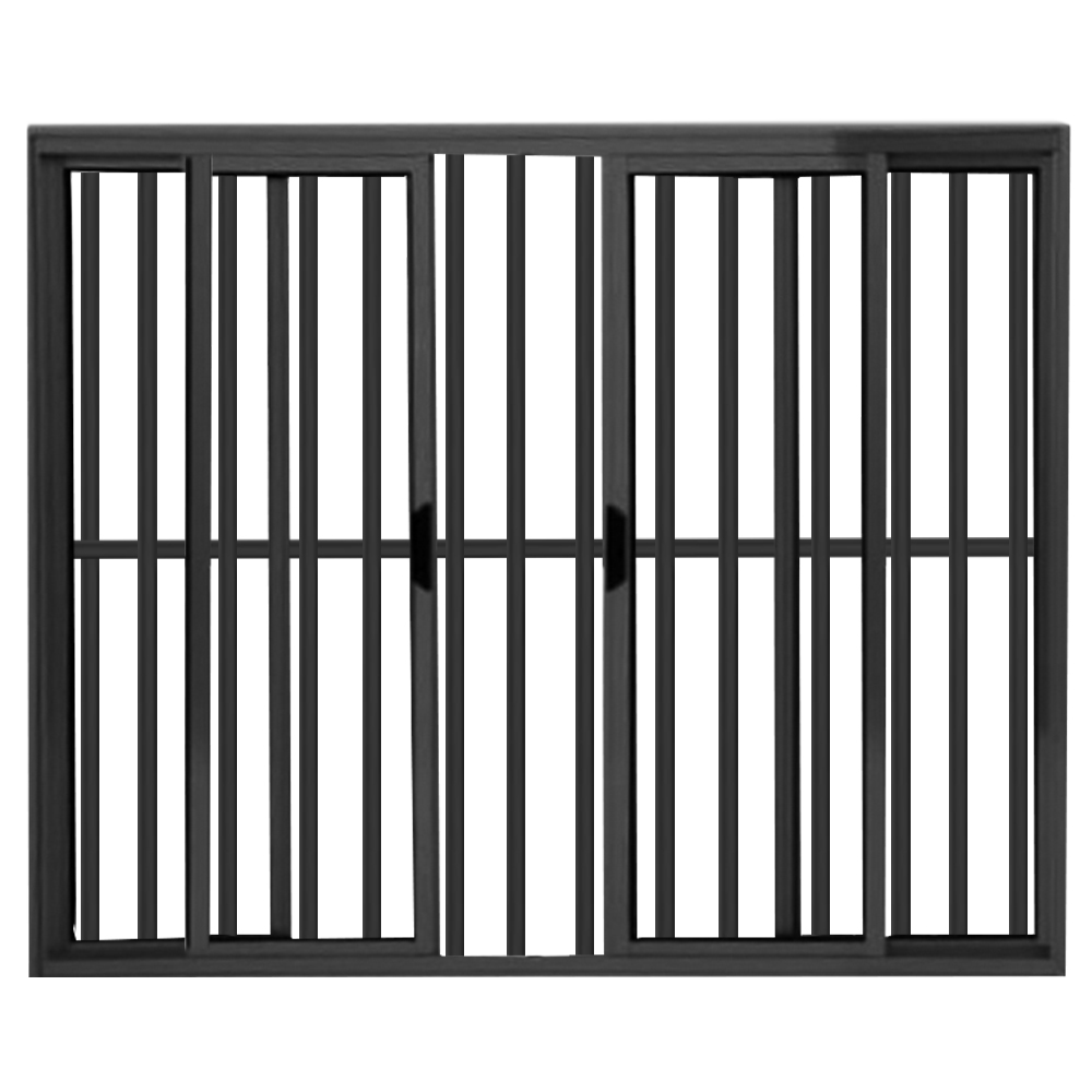 Janela Vitro 4 Folhas Com Grade Alumínio Preto Linha 20